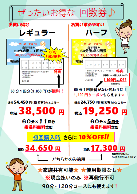 お得な回数券をご用意しております!